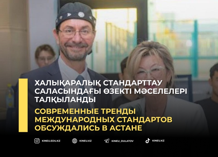 Астанадағы Назарбаев Университетінде халықаралық стандарттардың дамуына және олардың қазіргі әлемдегі рөліне арналған маңызды іс-шара өтті. Іс-шараға Халықаралық стандарттау ұйымының (ISO) Бас хатшысы Sergio Mujica арнайы қатысып, мазмұнды дәріс оқыды. Аталған кездесуге ҚИнЭУ стандарттау және тамақ технологиялары кафедрасының қауымдастырылған профессоры, Мансап және бизнес көшбасшылық орталығының директоры Ай-Гүл Сегізбаева да қатысты. Sergio Mujica «Халықаралық стандарттардың заманауи әлемдегі рөлі және даму трендтері» тақырыбында ашық дәріс өткізіп, бірқатар өзекті мәселелерді көтерді. Атап айтқанда, инклюзивтілік, экологияландыру, жасанды интеллектті басқару және кәсіби салалармен стандарттарды интеграциялау жайында ой бөлісті. Сондай-ақ, тез өзгеріп жатқан технологиялық ортада стандарттарды әзірлеу барысындағы сын-тегеуріндер мен мүмкіндіктерге ерекше назар аударылды. Бұл іс-шара халықаралық ынтымақтастықты нығайту мен экономика салаларында халықаралық стандарттарды енгізудің жаңа бағыттарын дамыту жолындағы тағы бір маңызды қадам болды.