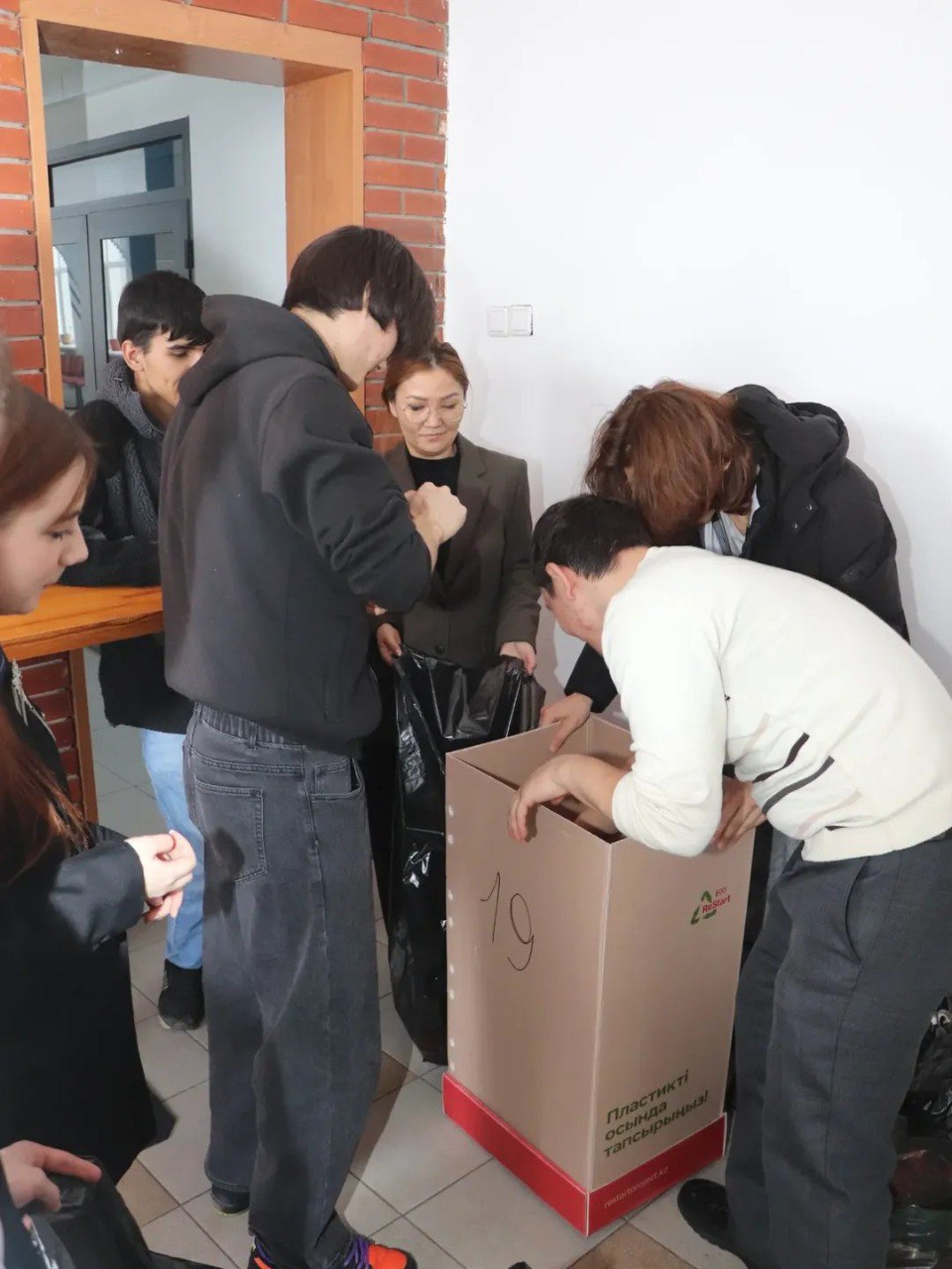 Бүгін белсенді студенттер экобокстарды қайтадан пластикалық бөтелкелерден тазартты. Бөтелкелерді бір пакетке, қақпақтарды бөлек жинады, ал қалған қоқыс… иә, өкінішке орай, кейбір студенттер бұл бокстардың мақсатын түсінбейді де, оларды қоқыс шелектеріне айналдырады.