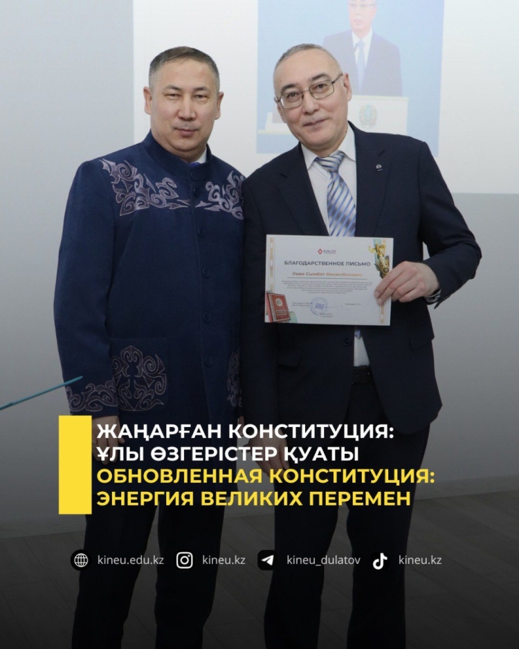 Бүгін университемізде әлеуметтік-экономикалық пәндер кафедрасының ұйымдастыруымен «Жаңарған Конституция: ұлы өзгерістер қуаты. Обновленная Конституция: энергия великих перемен» атты панельдік дискуссиясы өтті. Іс -шара кафедра оқытушылары мен білім алушылары, сонымен қатар Ахмет Байтұрсынұлы атындағы Қостанай өңірлік университетінің экономика және құқық факультеті мемлекет және құқық теориясы кафедрасының қауымдастырылған профессоры, заң ғылымдарының кандидаты Сымбат Кенжебекұлы Укин, осы университеттің аға оқытушысы, заң ғылымдарының магистрі Гүлжамал Қасымбайқызы Мұқашева, сондай-ақ «Жастар Рухы» жастар қанаты Қостанай облыстық филиалының жетекшісі, «AMANAT» партиясы облыстық филиалы саяси кеңесі бюросының мүшесі Аружан Айдарқызы Сәрсенбаева қатысты. Басқосуда қатысушылар Қазақстан Республикасы Конституциясына енгізілген негізгі өзгерістерді, олардың мемлекеттілікті дамытуға, құқықтық жүйені нығайтуға және елдегі прогресті қамтамасыз етуге ықпалын талқылады. Сонымен қатар, мемлекет дамуының тарихи жолы мен қазіргі қоғамдағы алдағы өзгерістердің болашағы туралы ой бөлісті. Университет ректоры Арман Оразалиұлы Исмаилов, жаңартылған Конституция еліміздің саяси-құқықтық дамуының жаңа кезеңін айқындайтынын атап өтті. Оның айтуынша, жаңа Конституция Әділетті Қазақстанның негізгі құндылықтарын айқындайды, ал оның басты қағидасы - адам, оның өмірі, құқықтары мен бостандықтары болып табылады. Әлеуметтік-экономикалық пәндер кафедрасының меңгерушісі Дархан Серікұлы Ахметов өз баяндамасында атап өткендей, жаңартылған Конституция - бұл Парламенттің ролін күшейту, жергілікті өз-өзін басқаруды дамыту, азаматтарды қорғау механизмдерін кеңейту, саяси плюрализмді нығайтуды көздейді. Сымбат Кенжебекұлы жаңа Конституция жобасы Қазақстандағы конституциялық дамудың жаңа кезеңін білдіретінін атап өтті. Ал Гүлжамал Қасымбайқызы өз баяндамасында жаңа Конституция жобасында адам құқықтарын қорғауға және мемлекеттің негізгі құқықтық қағидаттарын нығайтуға ерекше назар аударылғанын жеткізді. Аружан Айдарқызы өз сөзінде жаңа Конституция жобасының негізгі тұстарына тоқталып, әсіресе оның цифрлық аспектілеріне және әлеуметтік желілерде таралатын жалған ақпаратты ресми мәліметтерден ажырата білу мәселесіне назар аударды. Студенттер мен оқытушылар талқылауға белсенді қатысып, спикерлерге сұрақтар қойып, өз пікірлерін білдірді. Осындай кездесулер қоғамдағы өзекті мәселелерді талқылап қана қоймай, елдің болашағына бейжай қарамайтын белсенді азаматтық ұстанымды қалыптастыруға ықпал етеді.