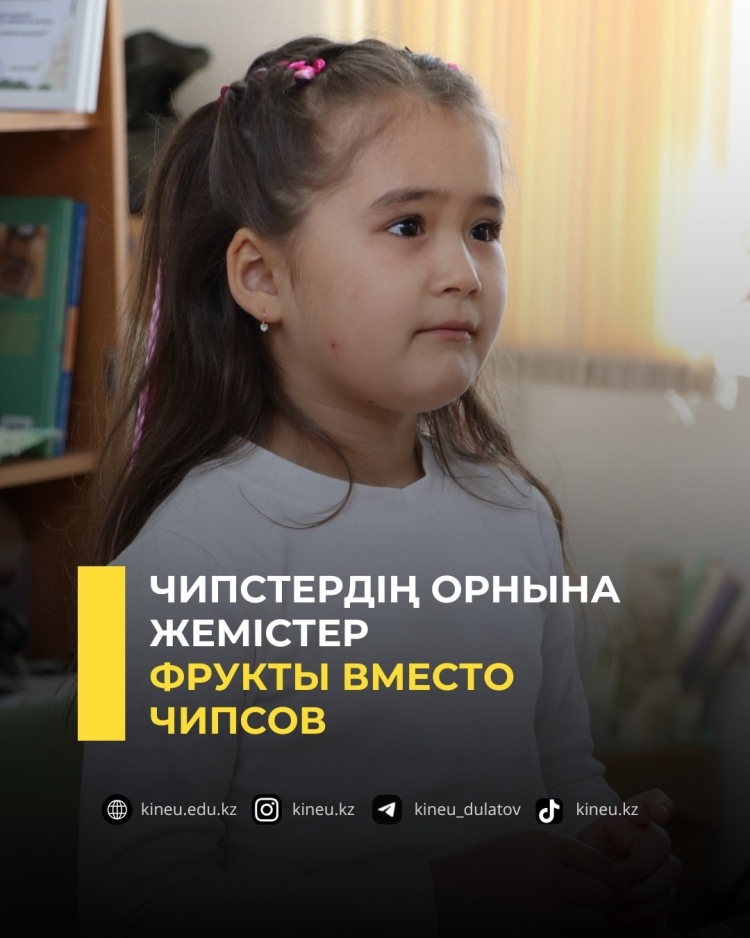 Балалар экоорталық жетекшісі Динара Шадринамен бірге пайдалы тәттілер - фруточипстерді дайындауды үйренді.