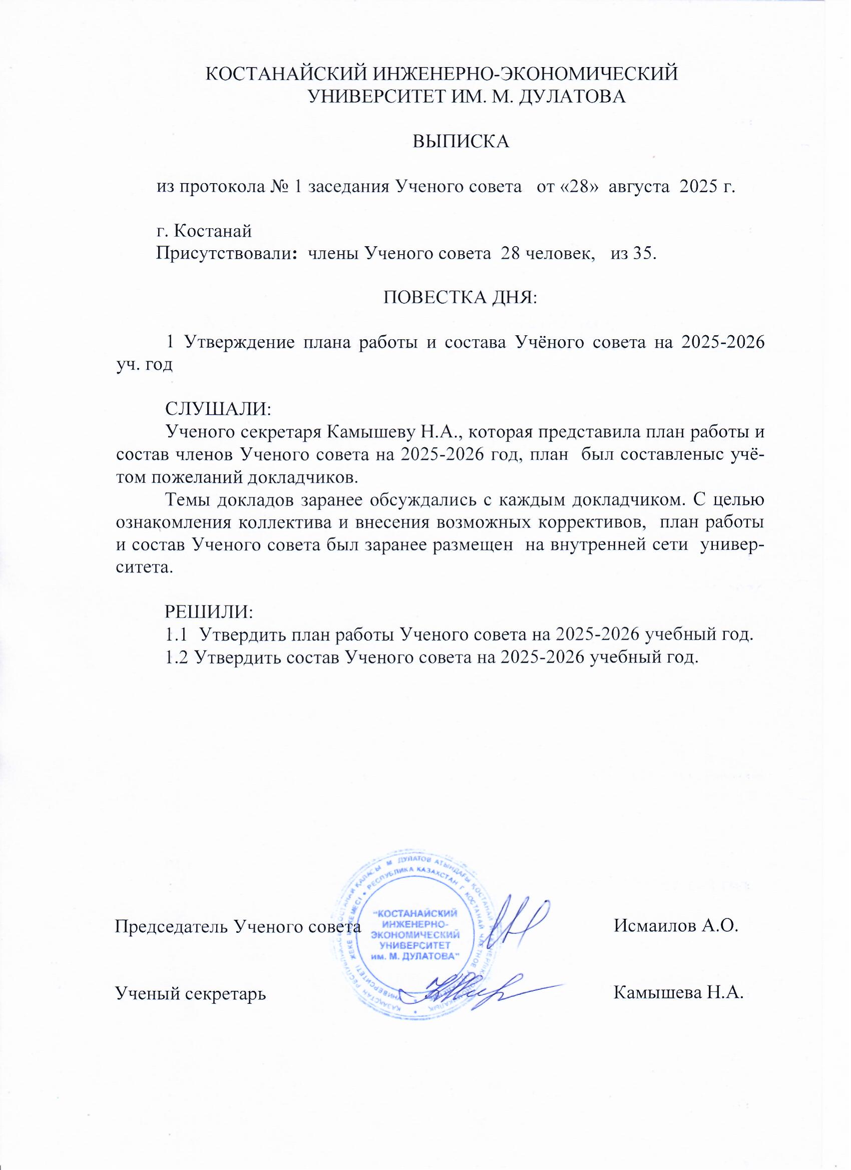 1 в-с Утверждение плана работы и состава Ученого совета на 2025-2026 уч год