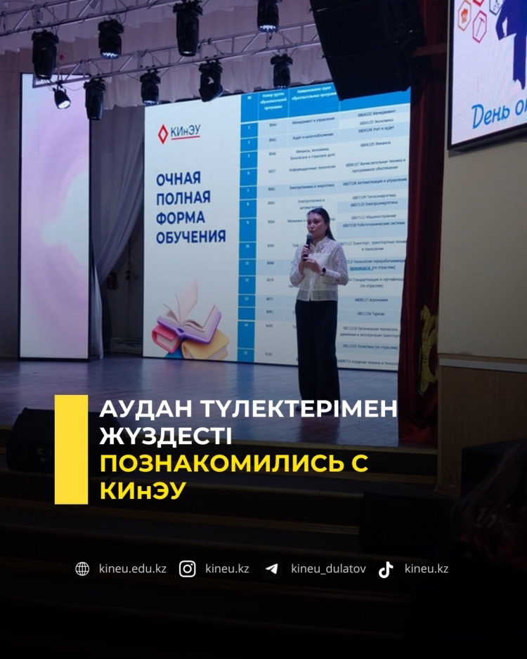 Профориентационная команда КИнЭУ продолжает выездную работу со школьниками области. Недавно они приняли участие в масштабном мероприятии - Дне открытых дверей, организованном Молодежным ресурсным центром отдела внутренней политики совместно с отделом образования акимата района Беимбета Майлина для учащихся 9–11 классов.